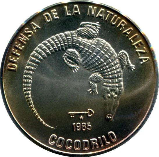 Cuban Crocodile centered, event name curved above, animal name below. Mintmark and date beneath image.