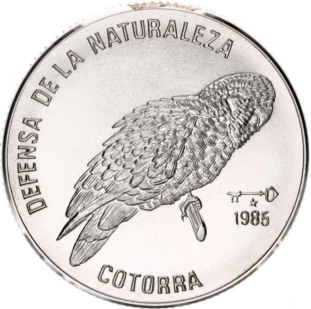 Cuban Amazon Parrot centered, curved event name above, animal name below, mintmark and date at lower right.