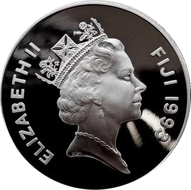 Queen Elizabeth II in profile, wearing the King George IV State Diadem.