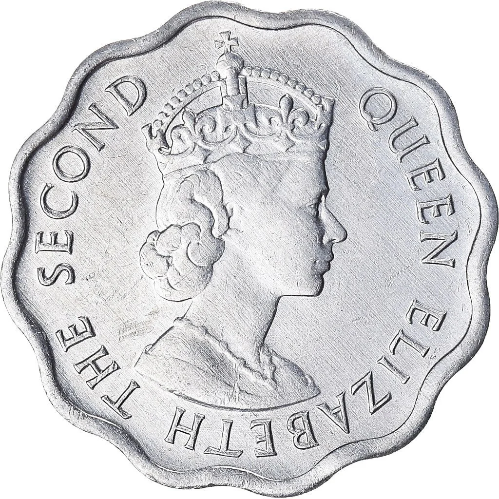 Crowned portrait of Elizabeth II facing right within a beaded circle.