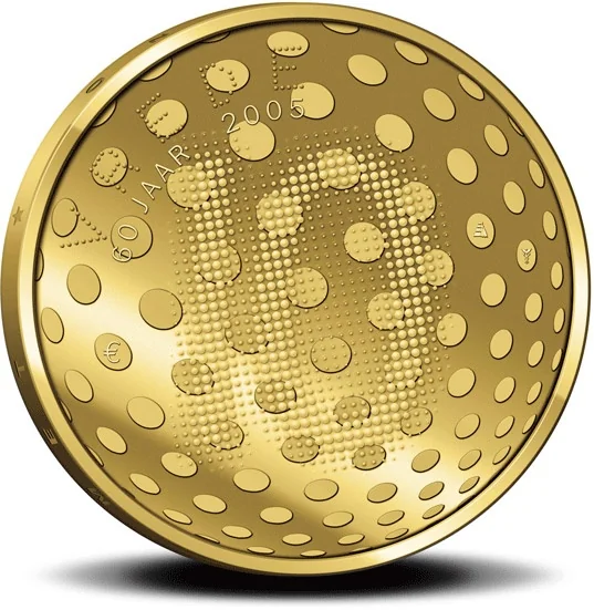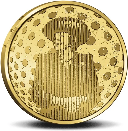 A hologram of Queen Beatrix, with the common issue logo to her left.