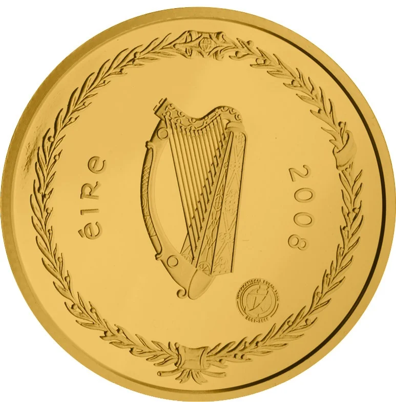 An Irish harp encircled by olive branches.