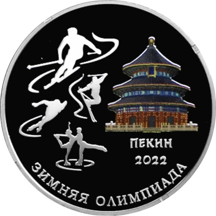 Four Olympic sports with a colorized Chinese pagoda to the right.