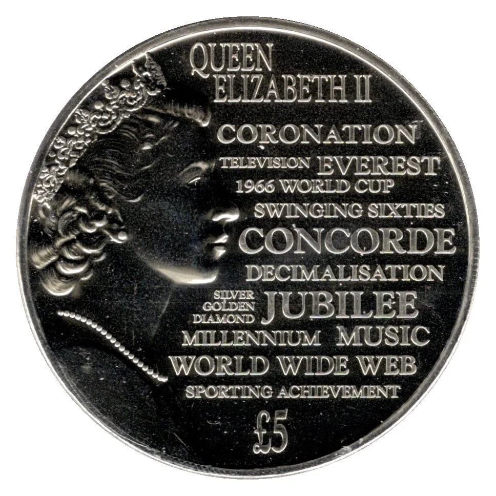 Queen Elizabeth II facing right, wearing the "Girls of Britain and Ireland" tiara, with legend and year encircling.
