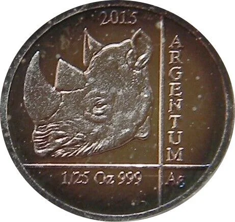 Rhino head left with date, metal name, weight, purity, and chemical symbol.