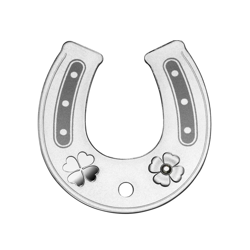 Two four-leaf clovers (Trifolium sp.) flanking a hole.