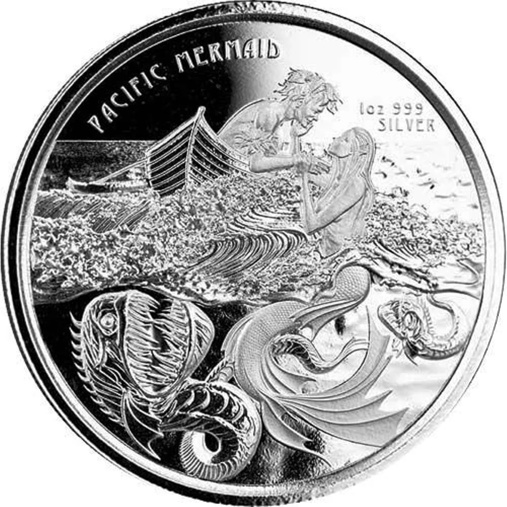 A mermaid faces a man in a boat on the sea, with two monstrous fish beside her and beneath the boat.