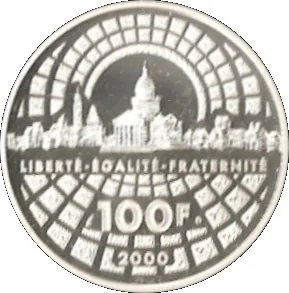 Description: Circular legend "JACQUES-GERMAIN SOUFFLOT" / Right: "1713 1780" over "RF" / Center: his bust / Right: edge of a building pediment. Soufflot was a major French architect, designer of buildings including the Sainte-Geneviève church, later the Panthéon.