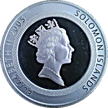 Queen Elizabeth II in profile, wearing the King George IV State Diadem.