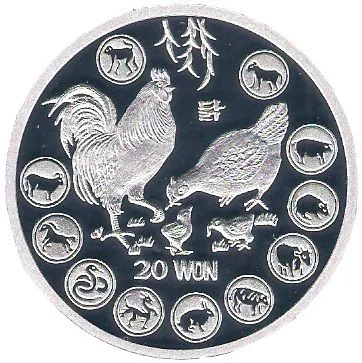 Description: Pyeongyang East Gate. Denomination below, Year of the Rooster at bottom.