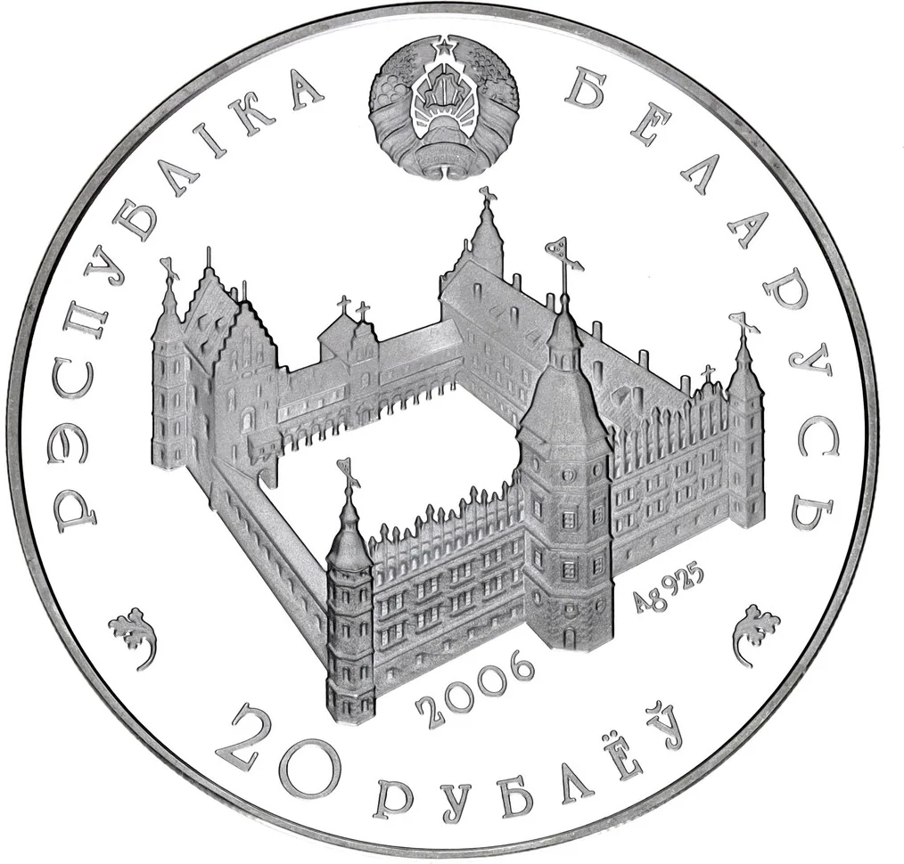 Rim inscriptions: "РЭСПУБЛІКА БЕЛАРУСЬ" (top), "20 РУБЛЁЎ" (bottom).