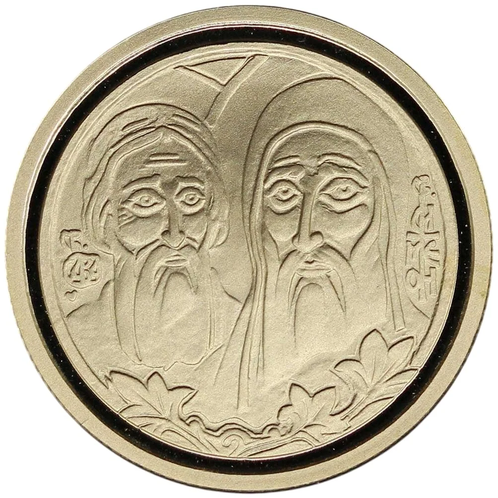 Description: Issuer's coat of arms above Chilandar Monastery, flanked by anniversary dates, issuer name above, value below.