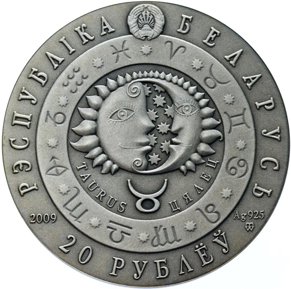 Circumference: РЭСПУБЛIКА БЕЛАРУСЬ (top); 20 РУБЛЁЎ (bottom).