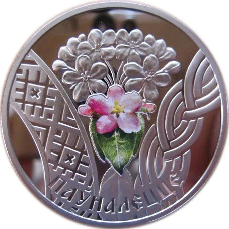 Description: Obverse: The State Coat of Arms of Belarus. Reverse: The Slavic deities Lada and Lel on a triangular base with symbols of life, family, and the Sun. Inscriptions: "РЭСПУБЛІКА БЕЛАРУСЬ", denomination "20 РУБЛЁЎ", year, and alloy standard.