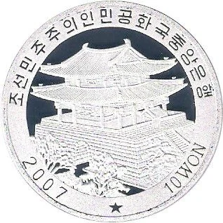 Pyeongyang's East Gate, with date and denomination below.