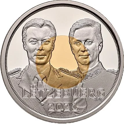 Busts of Grand Duke Henri of Luxembourg and King Philippe of Belgium.