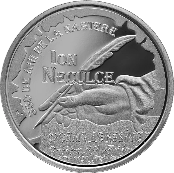 Handwritten quill excerpt from "O samă de cuvinte," with the inscriptions "350 DE ANI DE LA NASTERE" and "ION NECULCE."