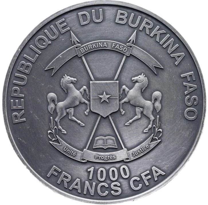 A shield flanked by stallions, topped by a banner and flanked by two spears.