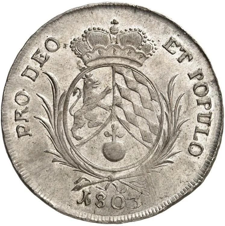 Translation: By the Grace of God, Maximilian Joseph, Count Palatine of the Rhine, Duke of Upper and Lower Bavaria, Arch-Steward and Elector of the Holy Roman Empire.