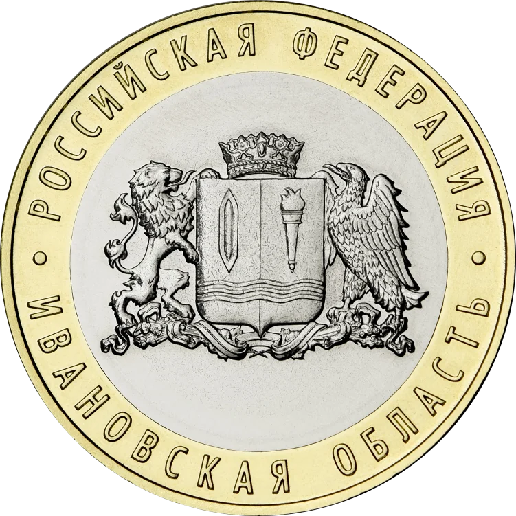 The reverse side bears the Ivanovo Region's coat of arms, encircled by the inscriptions "РОССИЙСКАЯ ФЕДЕРАЦИЯ" and "ИВАНОВСКАЯ ОБЛАСТЬ."