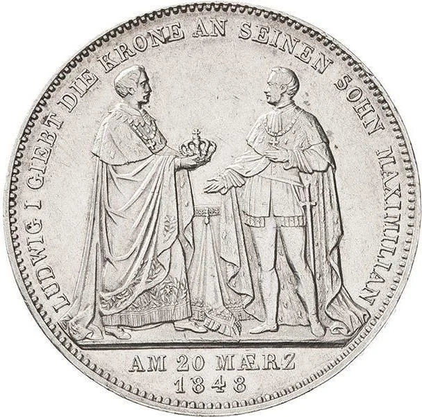 LUDWIG I GIVES THE CROWN TO HIS SON MAXIMILIAN