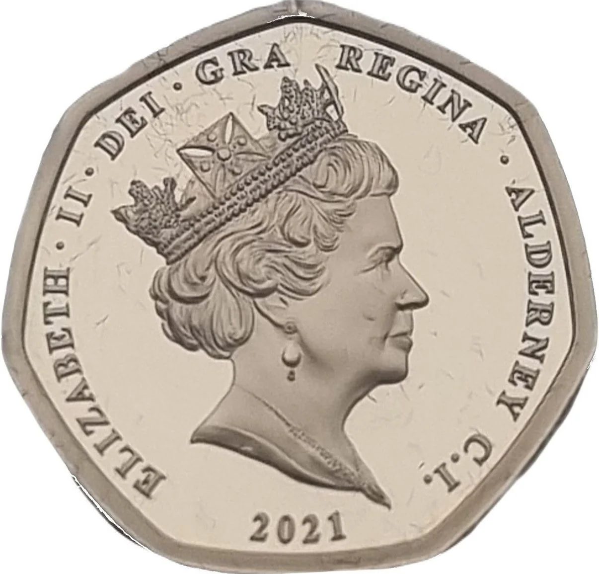 ELIZABETH II · BY THE GRACE OF GOD · QUEEN · ALDERNEY · C.I. 2021