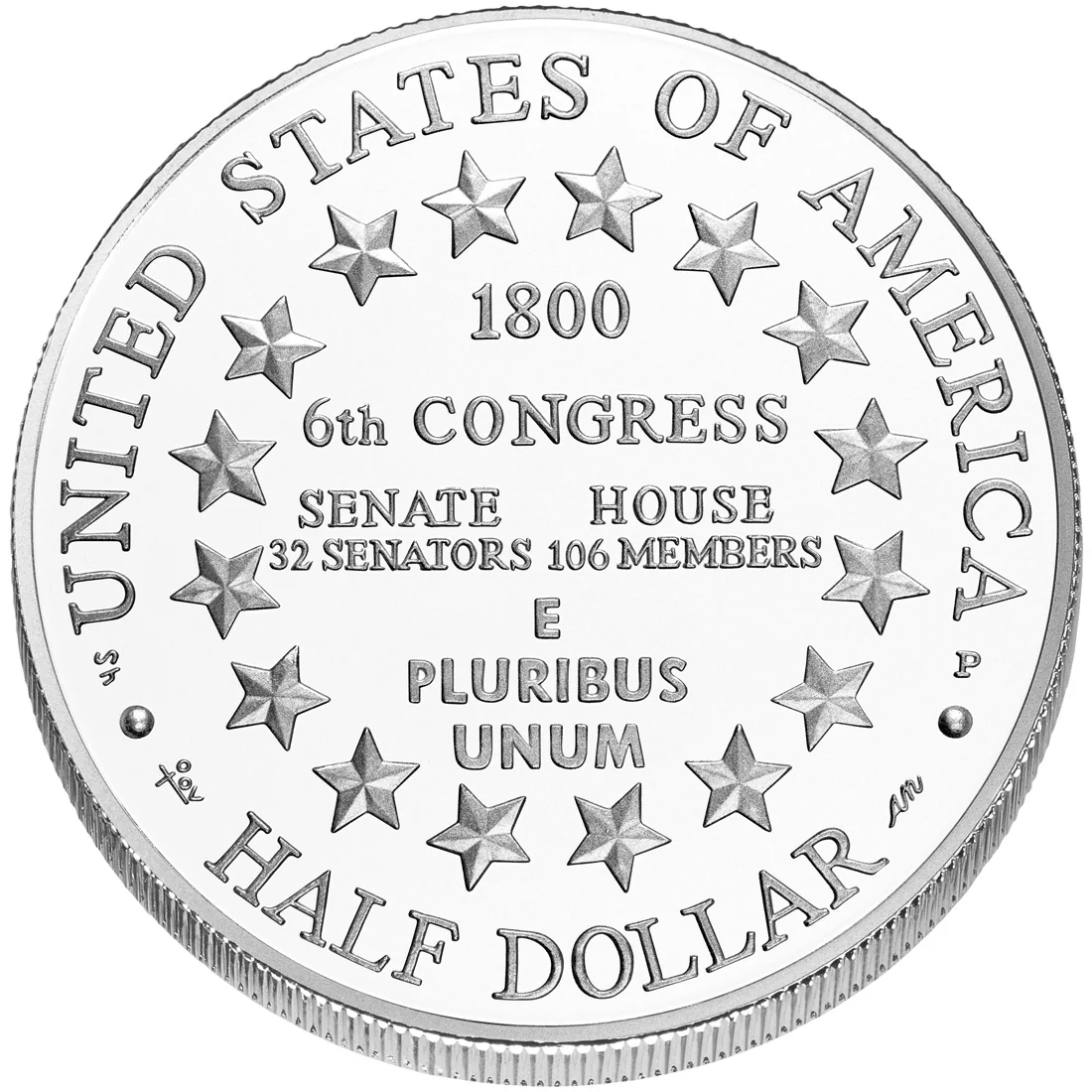 Inscriptions in varied fonts encircled by 16 stars, representing the states of 1800.