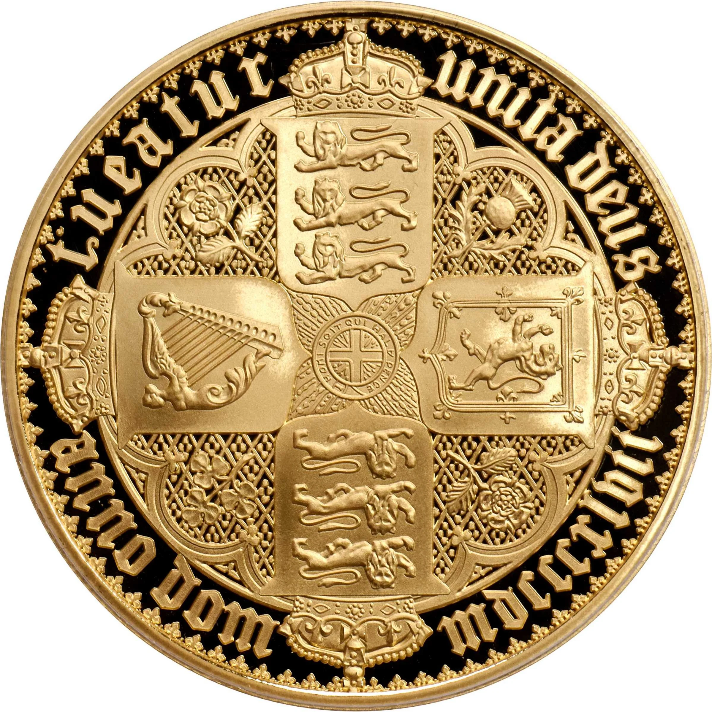 Description: Queen Elizabeth II portrait right, gothic style, inscription around, left denomination, right date.