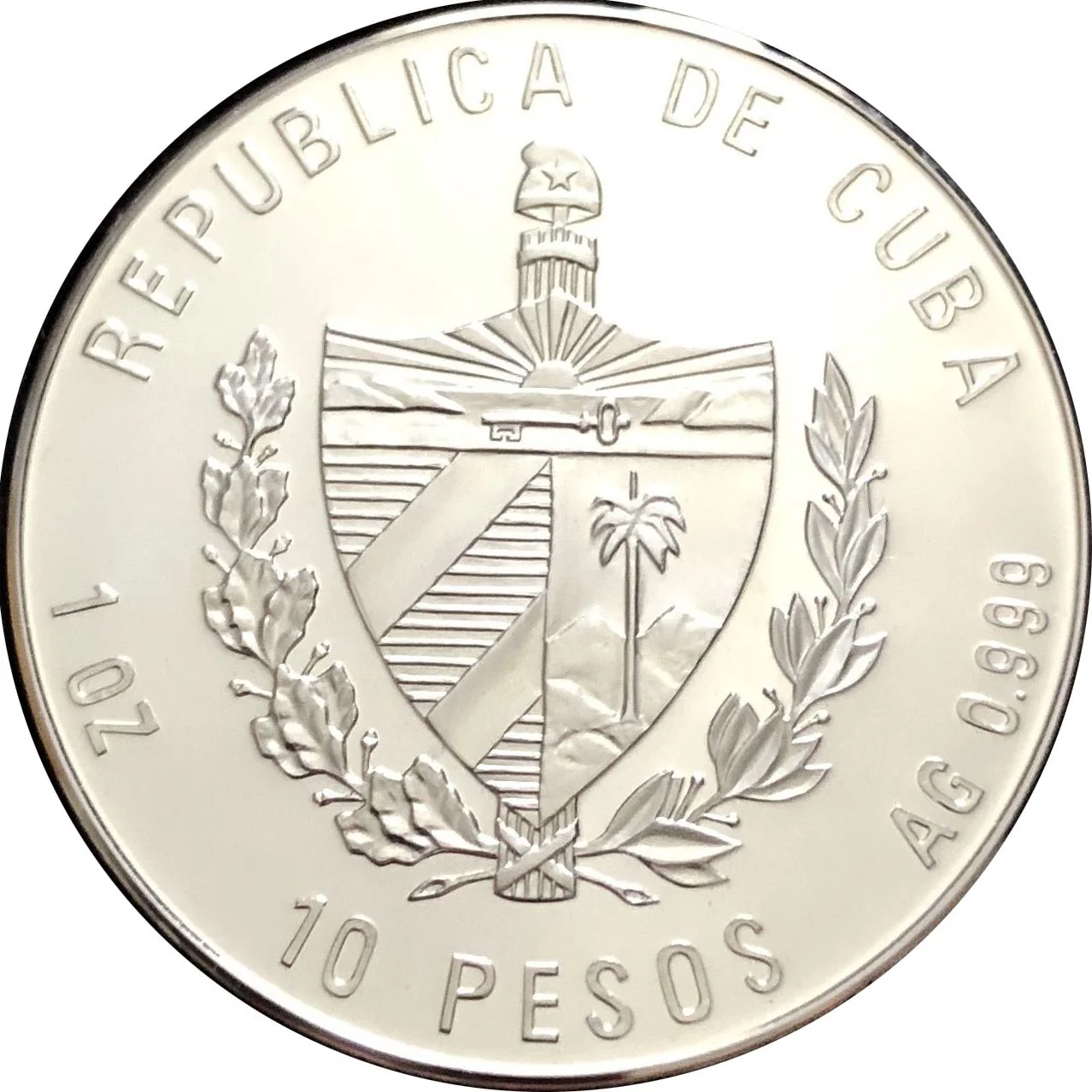 Cuban coat of arms at center, country name above, face value below, weight and fineness on sides. Similar to KM# 682 with updated face value and added specifications.
