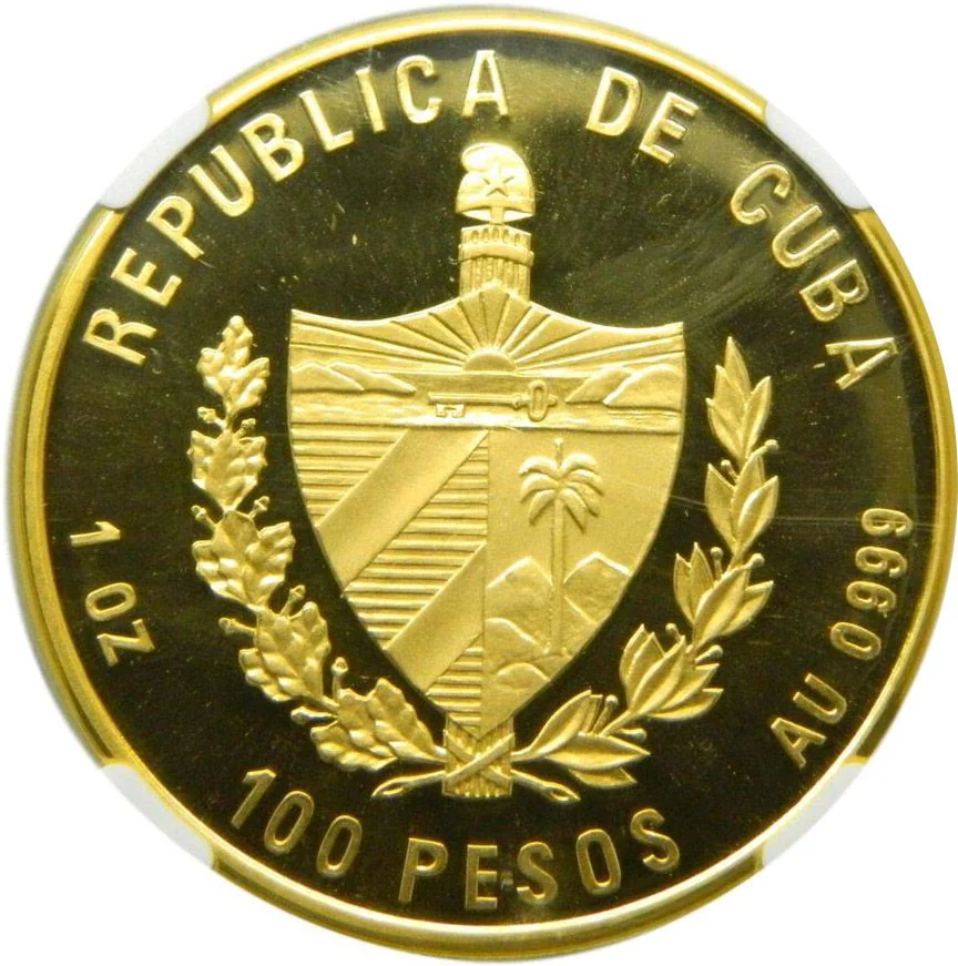Cuban coat of arms centered, country name above, face value below, weight and fineness on the sides.