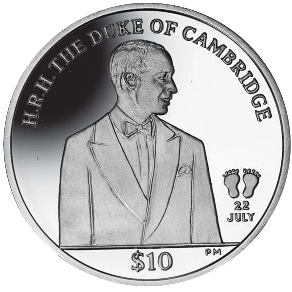 The Duke of Cambridge with Prince George's birth date and tiny footprints.