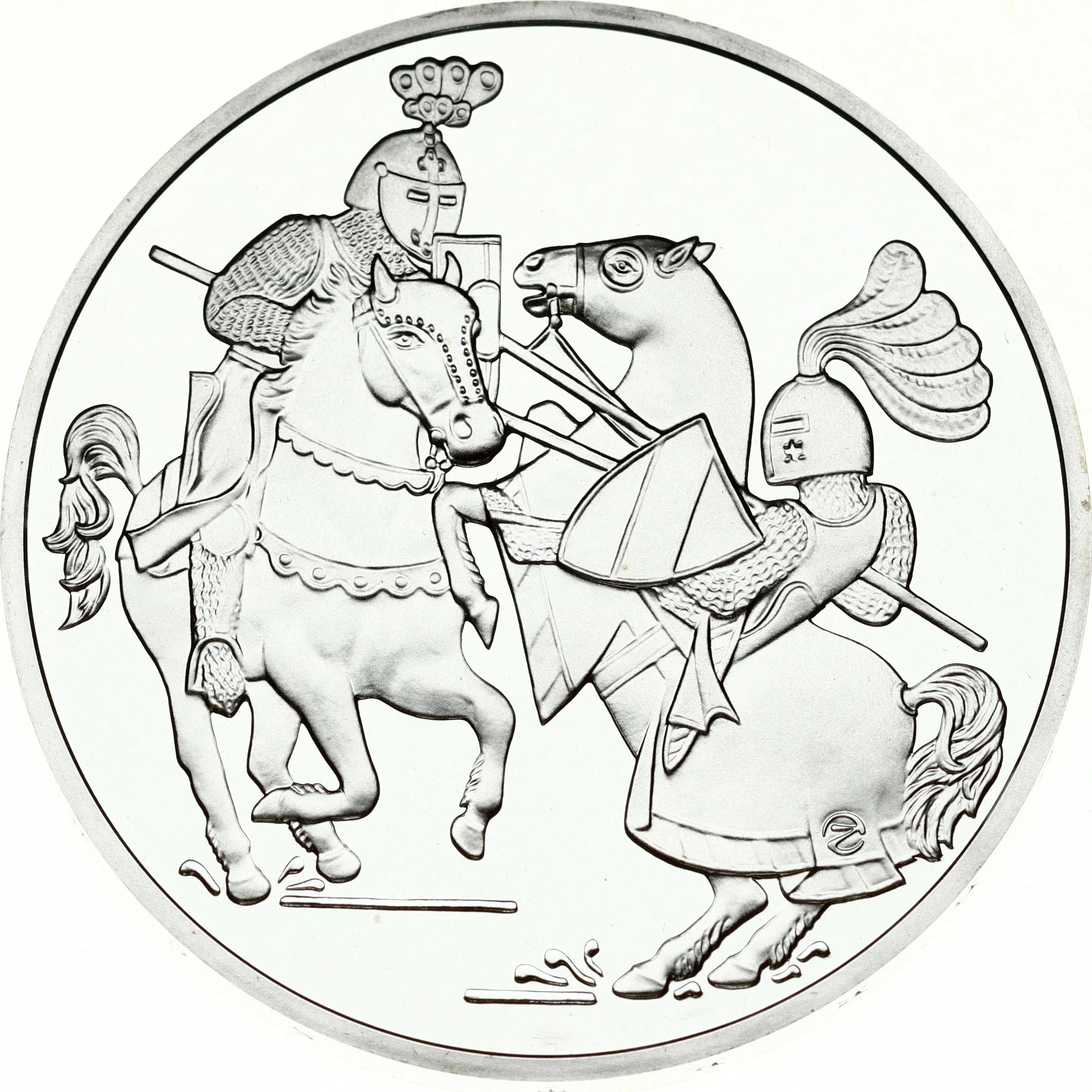 Knights dueling on horseback.