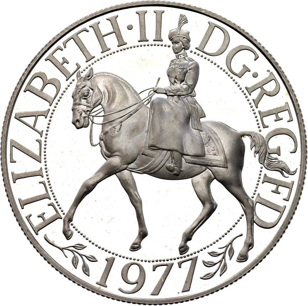 Queen Elizabeth II on horseback left, legend encircling, date beneath.