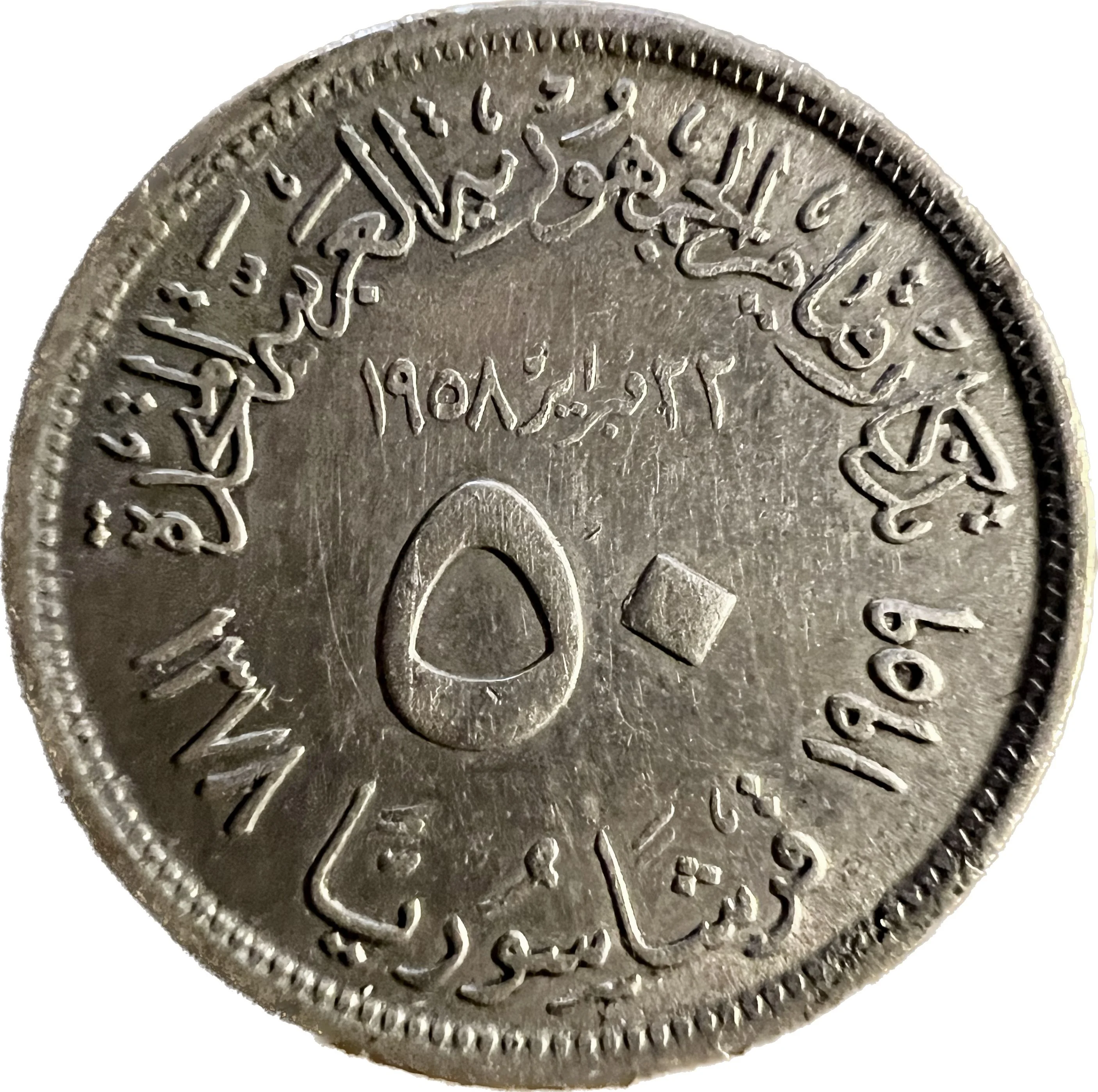In 1959, Syria's currency situation was fundamentally defined by its political union with Egypt within the United Arab Republic (UAR), established in 1958. Prior to the union, Syria used the Syrian pound, which was issued by the Banque de Syrie et du Liban. A key early act of the UAR government was the creation of a unified central bank, the Central Bank of the United Arab Republic, which began operations in 1959 with the mandate to issue a single currency for both regions.