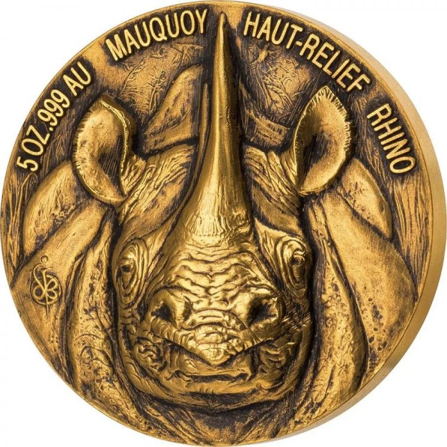 5 OZ .999 AU MAUQUOY HAUT-RELIEF RHINO