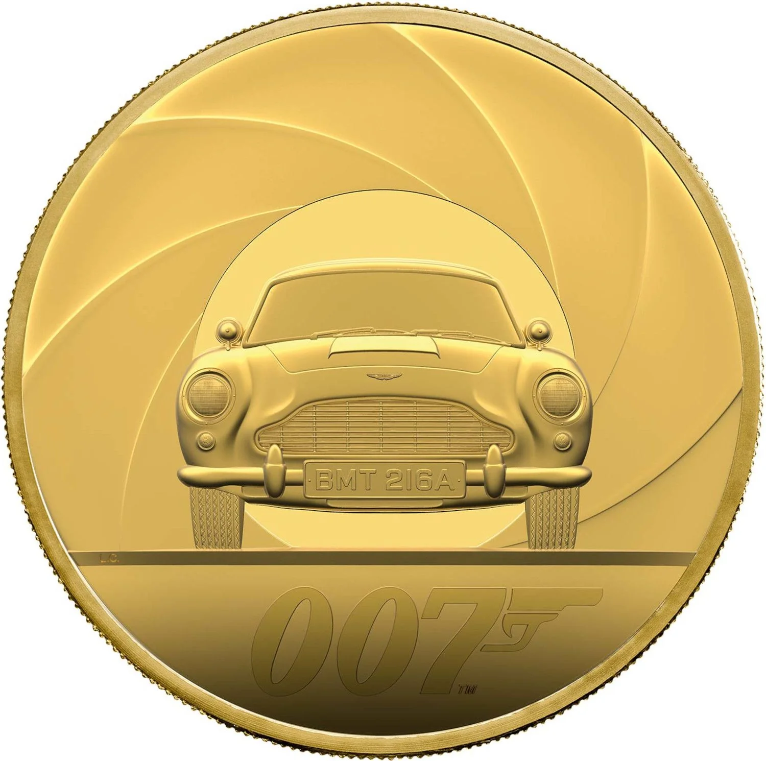 Aston Martin DB5 with James Bond's BMT 216A plate and logo.