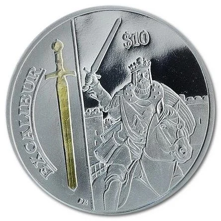King Arthur with Excalibur above, left weapon selectively gold-plated.