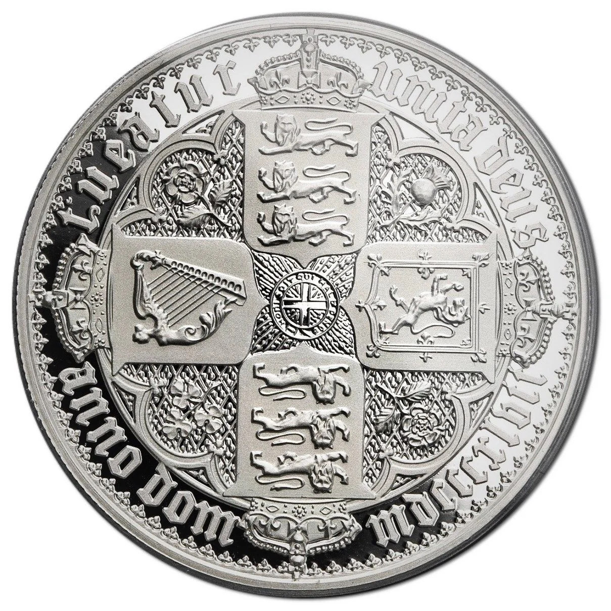 Translation: Britanniarum regina fidei defensor Elizabeth Dei gratia