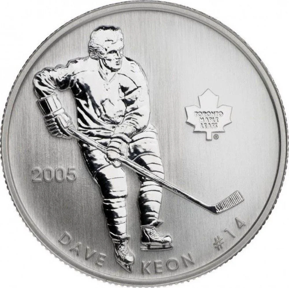 Dave Keon playing hockey, with the Maple Leafs logo on the right and the date on the left.