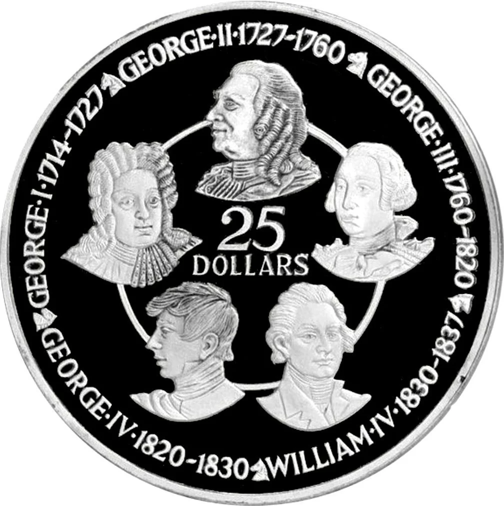 Portraits of Hanoverian kings: George I through IV and William IV.
