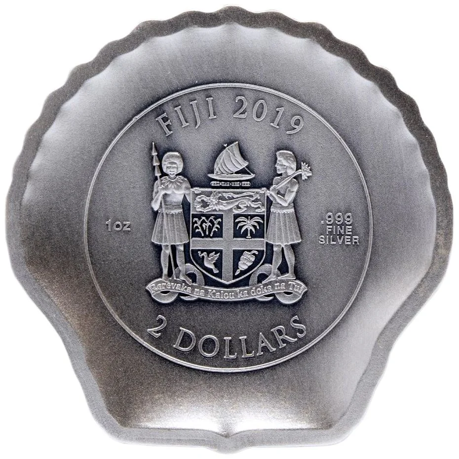 Description: The obverse features a seashell interior and Fiji's Coat of Arms.