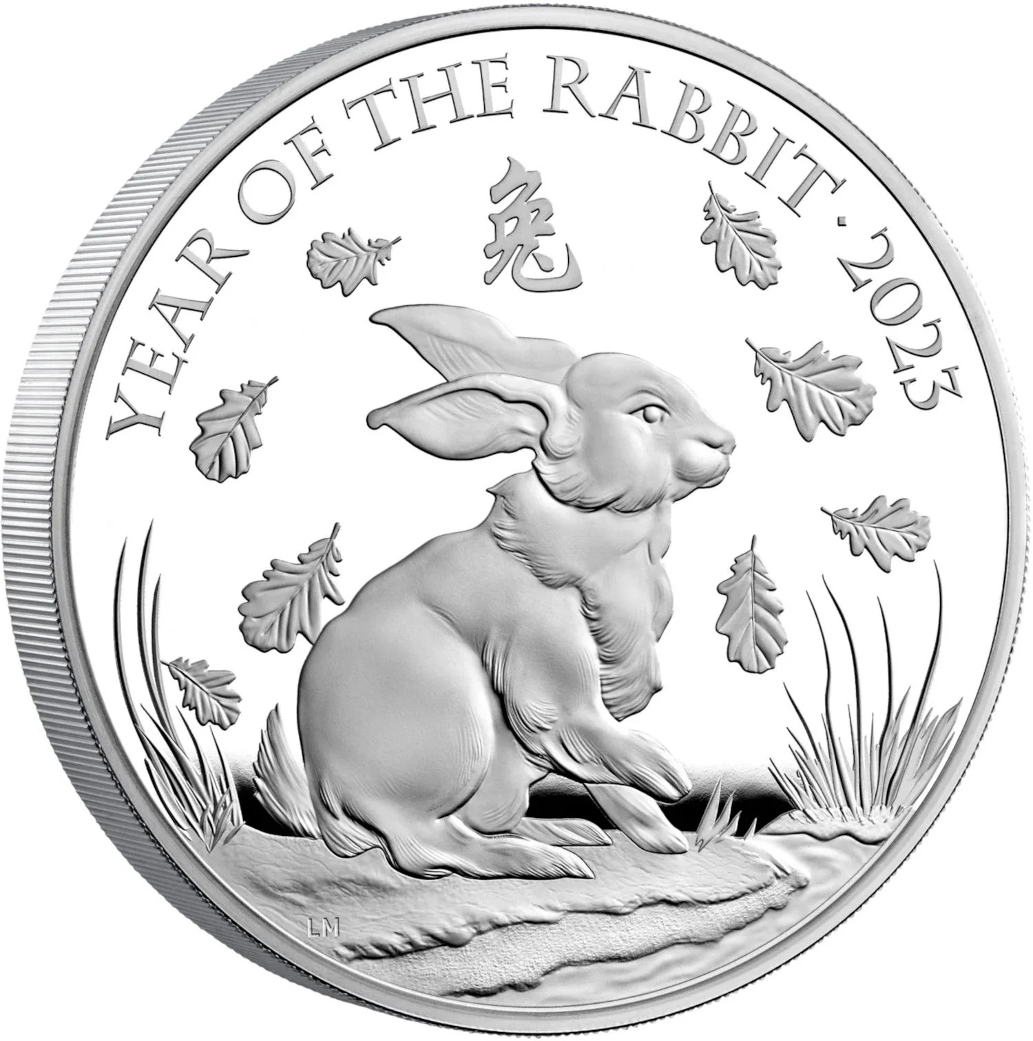 Rabbit facing right amid falling leaves, with legend, date, and Chinese character above.