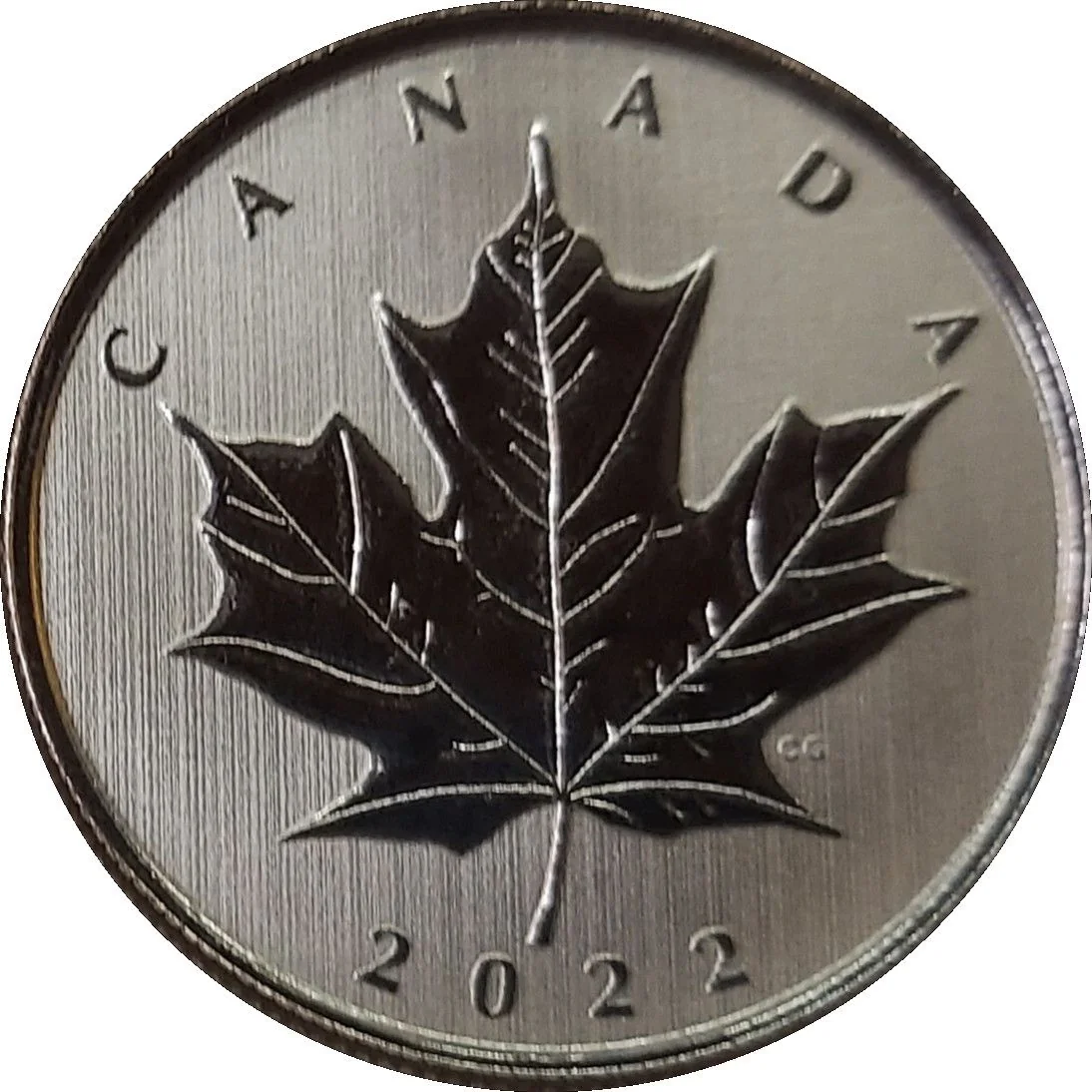 Designed by Celia Godkin, this coin's reverse features a classic maple leaf, symbolizing both Canada and the individual stories of its people. It includes "CANADA" and "2022".
