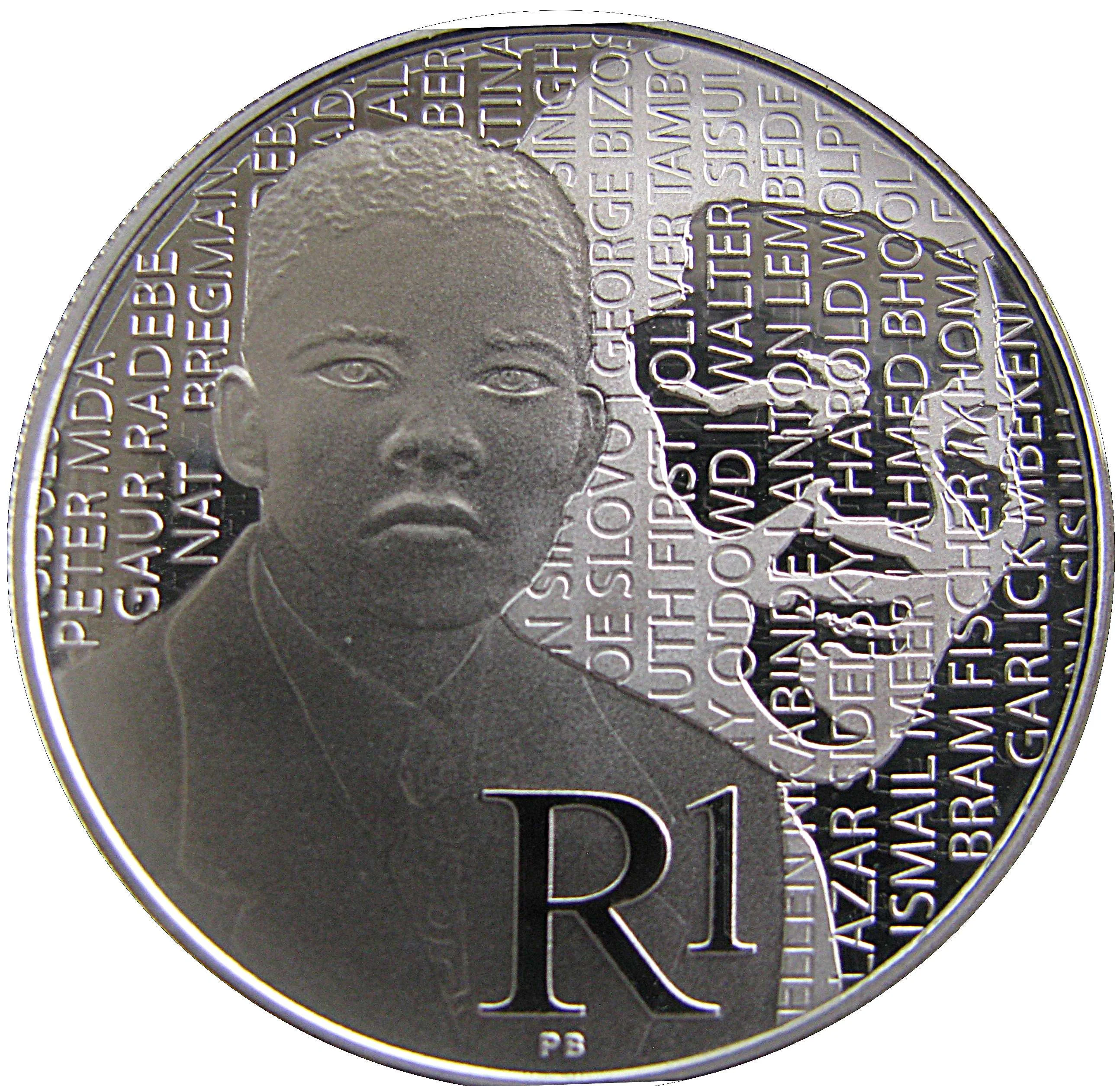 The obverse features Nelson Mandela alongside South Africa's national flower, the King Protea.