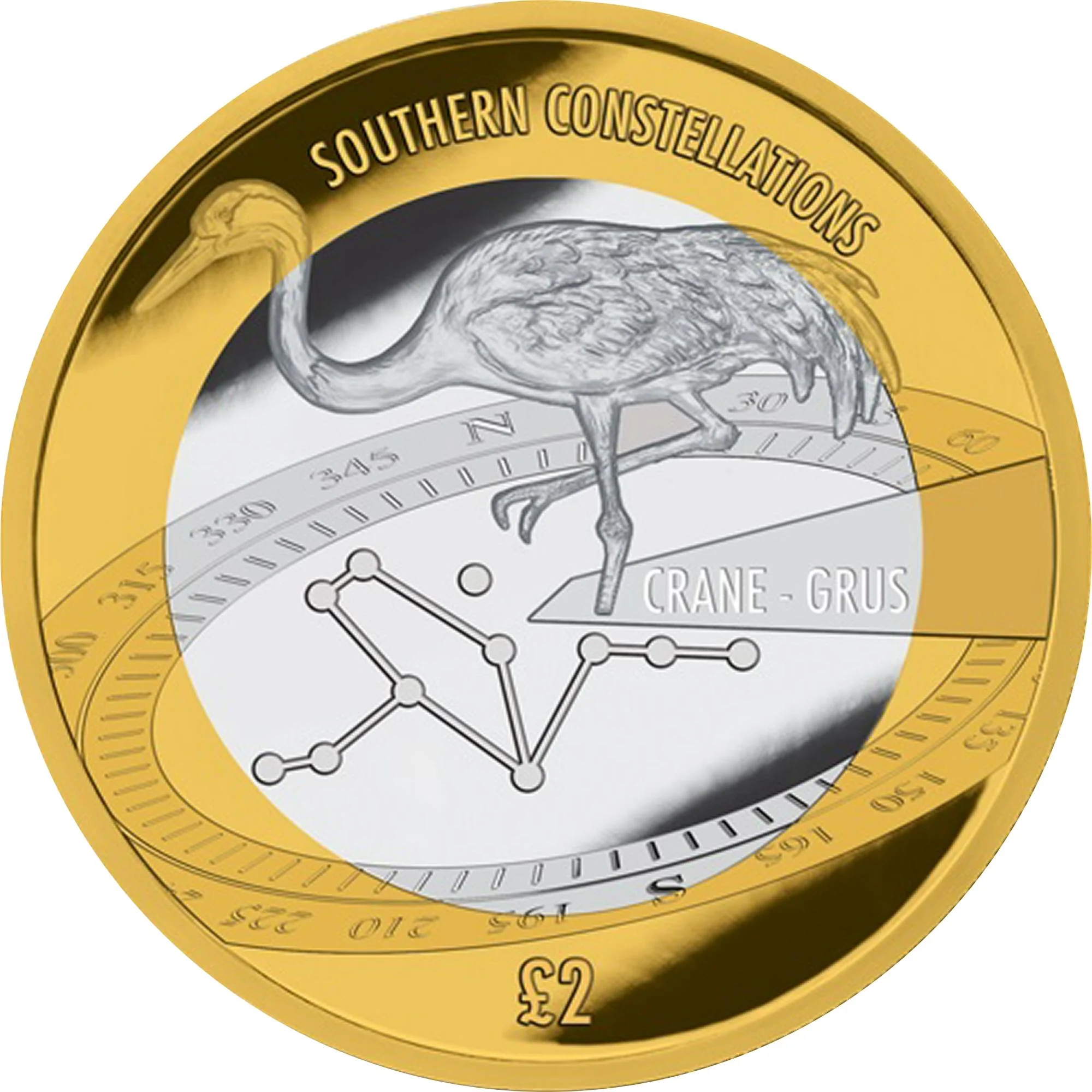 Grus constellation under a Crane and Antarctic compass.