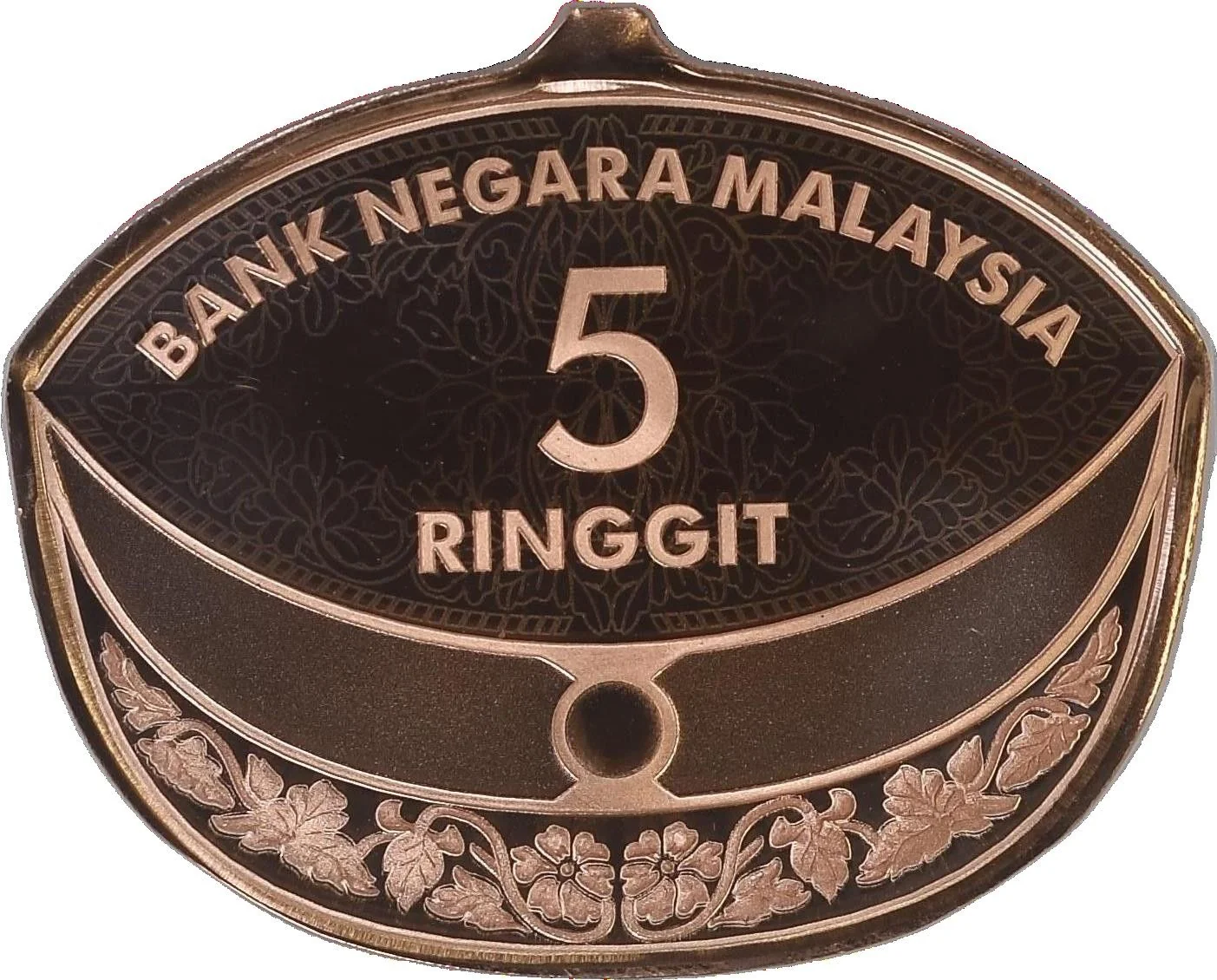 Description: Celebrating 50 years of coin minting ("50 TAHUN PENGHASILAN DUIT SYILING"), the design features the numerals "50" styled as coins. A traditional floral wau kite flies across stars, symbolizing Kilang Wang's progress and evolution.