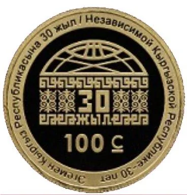 Inscription: КЫРГЫЗ РЕСПУБЛИКАСЫНЫН УЛУТТУК БАНКЫ • НАЦИОНАЛЬНЫЙ БАНК КЫРГЫЗСКОЙ РЕПУПУБЛИКИ •