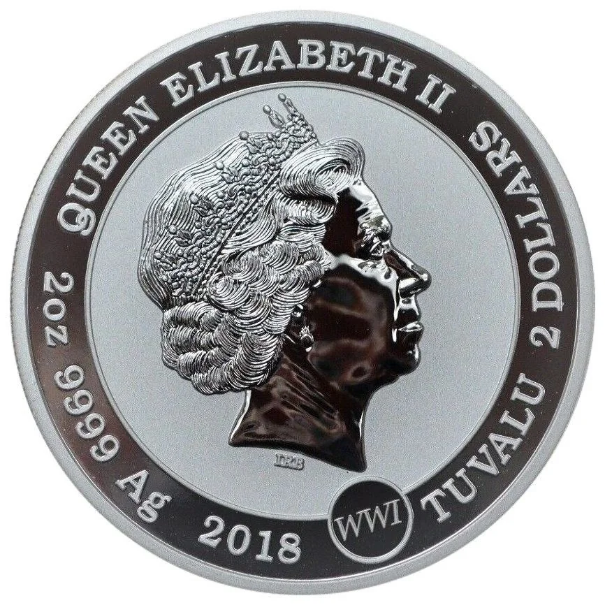 2oz 9999 Ag 2018 WWI TUVALU 2 DOLLARS