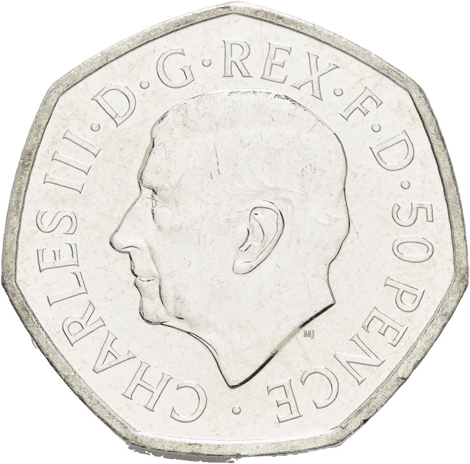 Charles III, by the Grace of God, King, Defender of the Faith, 50 Pence.