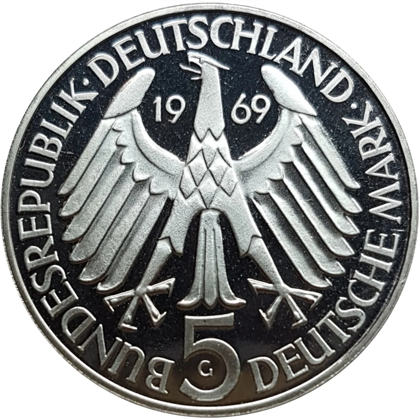 German eagle dividing date, with denomination and mintmark below.
